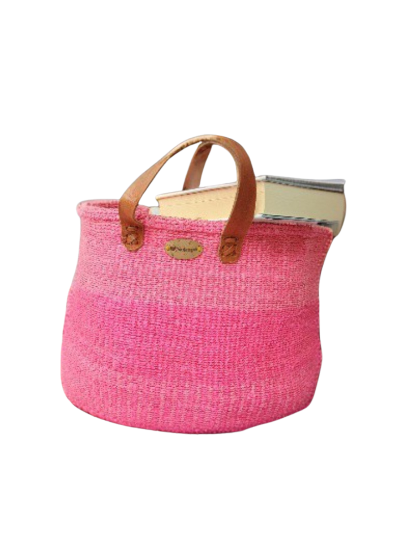 This pink kiondo basket has 2 leather handles.